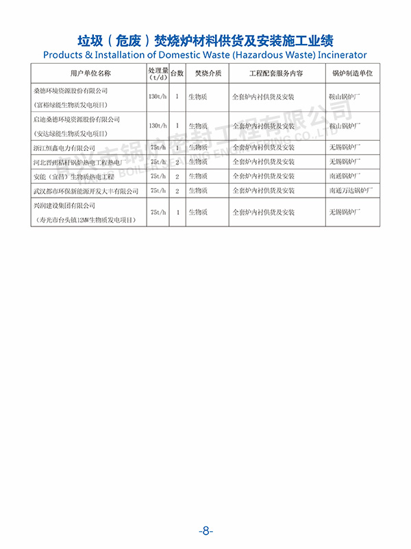 垃圾(危廢)焚燒爐材料供貨及安裝施工業(yè)績(jī)(四)