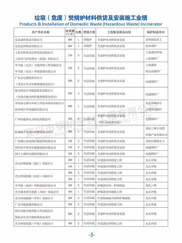 垃圾(危廢)焚燒爐材料供貨及安裝施工業(yè)績(一)